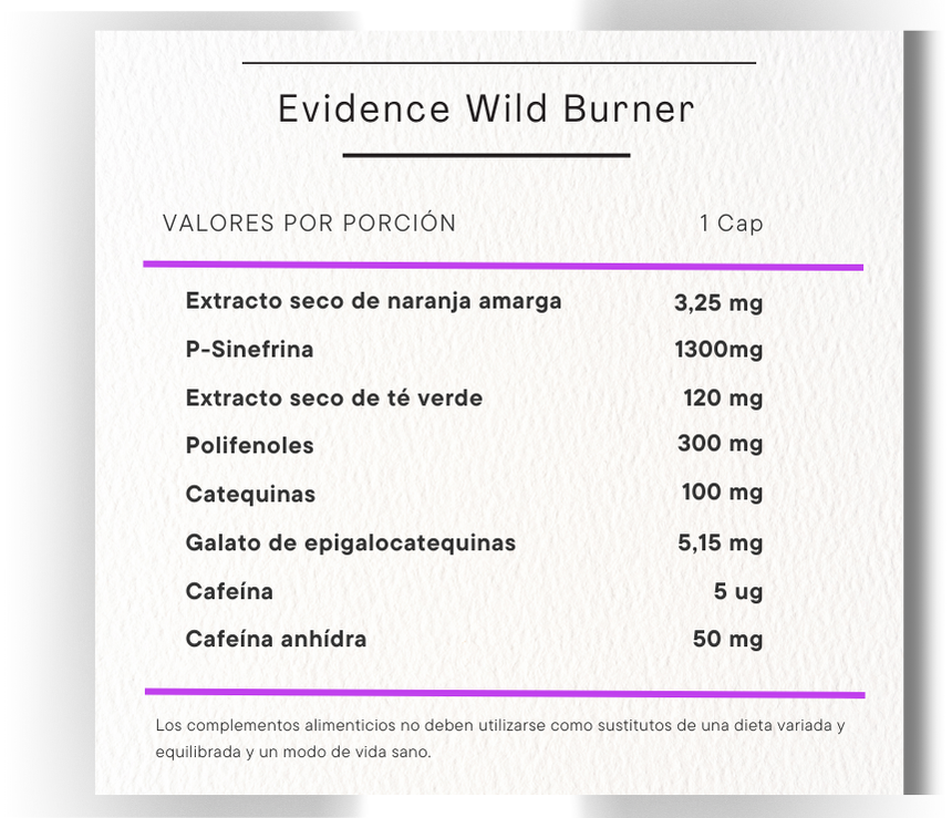 En caso de realizar ejercicio físico, se deberá tomar Wild Burn en un periodo de 40-60 minutos antes de la actividad.