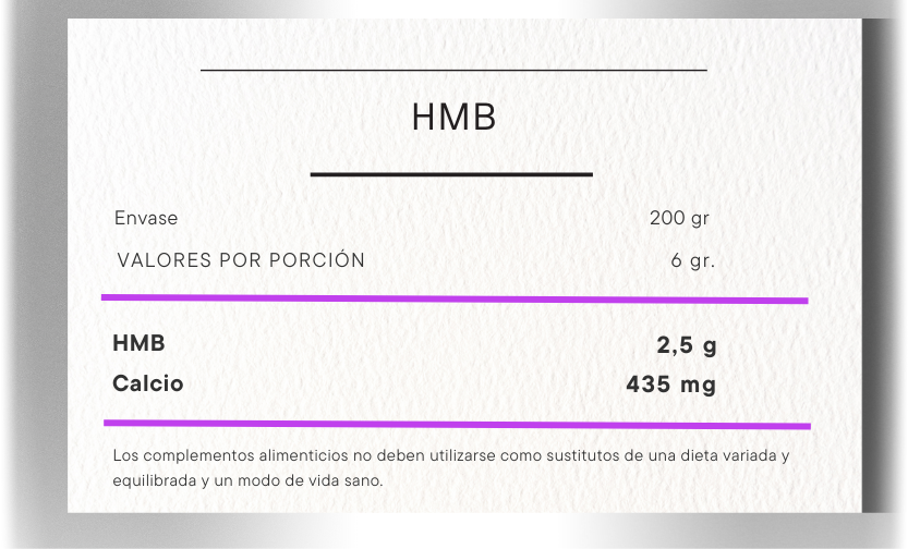 HMB en polvo o HMB-Ca es un complemento formulado con β-Hidroxi-β-MetilButírico un metabolito del aminoácido