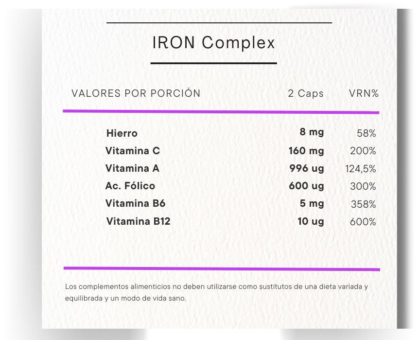 Complemento alimenticio a base de hierro (Lipofer®) diseñado para tratar la deficiencia de este mineral.
