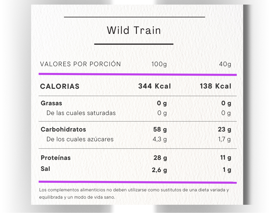 Wild Train es un suplemento formulado para optimizar tu rendimiento durante la práctica deportiva intensa. Ha sido diseñado específicamente para ser tomado durante el entrenamiento.